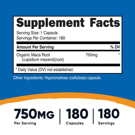 Nutricost Maca Root 750Mg, 180 Capsules, 180 Servings - Vegetarian Supplement