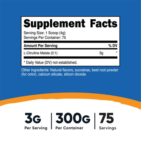 Nutricost L-Citrulline Malate Powder Unflavored -- 3000 Mg - 42.3 Oz