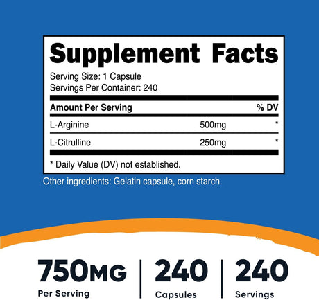 Nutricost L-Arginine L-Citrulline Complex 750Mg, 240 Capsules - Non-Gmo