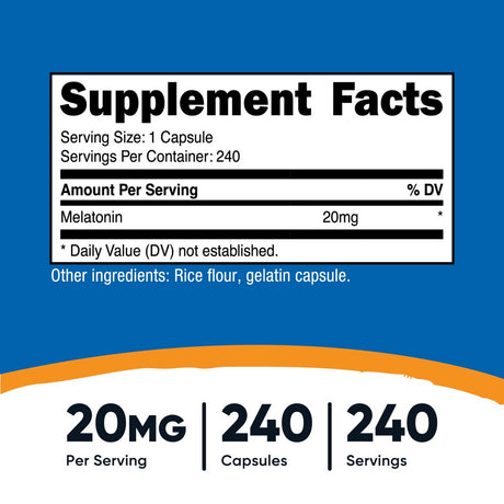 Nutricost Melatonin 20Mg, 240 Capsules, Non-Gmo Supplement