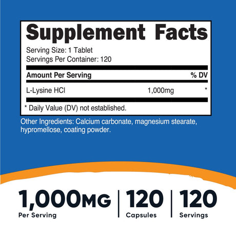 Nutricost L-Lysine 1000Mg, 120 Tablets - Gluten Free & Non-Gmo Amino Acid Supplement