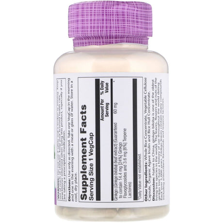 Solaray Ginkgo Biloba Leaf Extract, 60 Mg, 120 Vegcaps