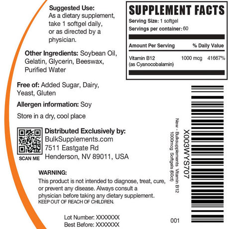 Bulksupplements.Com Vitamin B12 Softgels, 5000Mcg - Vitamin B12 Supplements (60 Softgels)