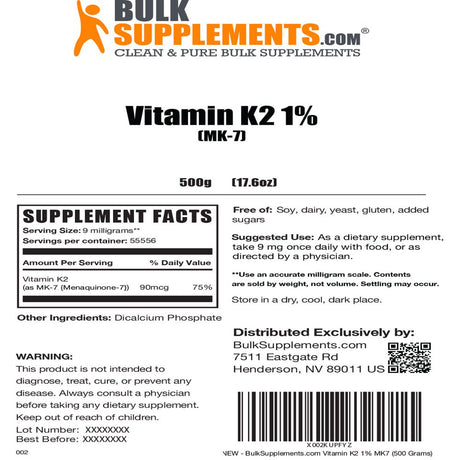 Bulksupplements.Com Vitamin K2 MK7 Powder (500 Grams)
