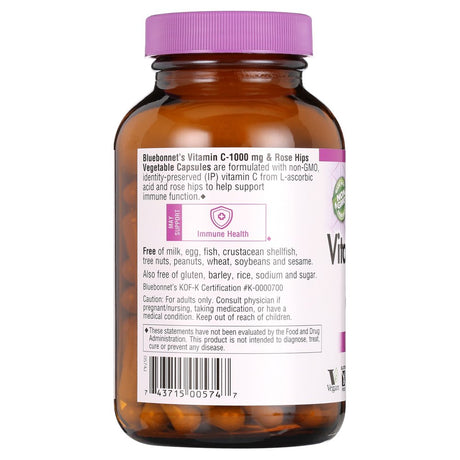 Bluebonnet Nutrition - Vitamin C-1000 Mg plus Rose Hips - 90 Vegetarian Capsules