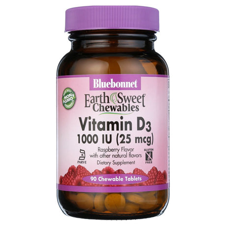 Bluebonnet Earthsweet Chewables Vitamin D3 25 Mcg (1000 IU) Raspberry 90 Tablets
