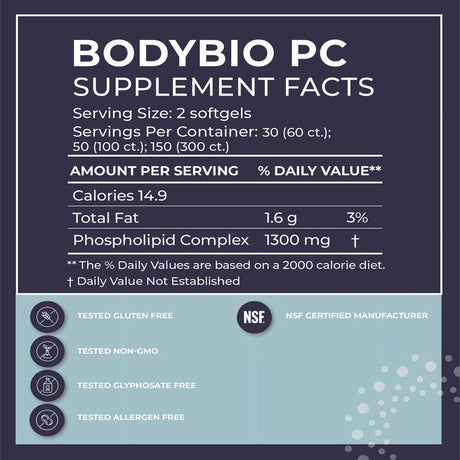 Bodybio PC Brain Supplement 100 Phosphatidylcholine Softgels