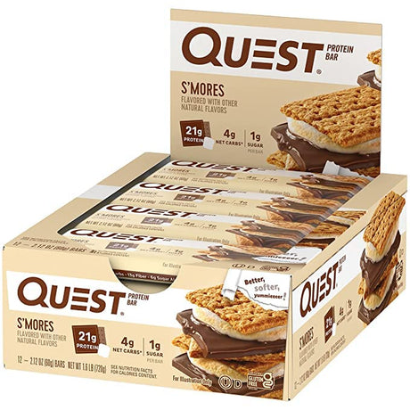 1) Pack of 4 Bars inside - 2.12Oz (60G) Each Net WT 8.5Oz(240G) QUEST PROTEIN BAR S'MORES FLAVOR