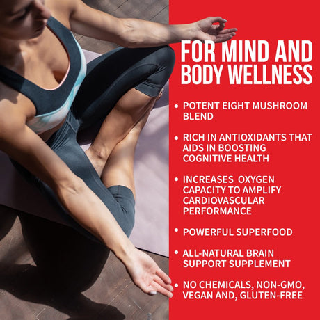 Focus 8 Mushroom Supplement by Gobiotix | Brain Booster | Immune System Support