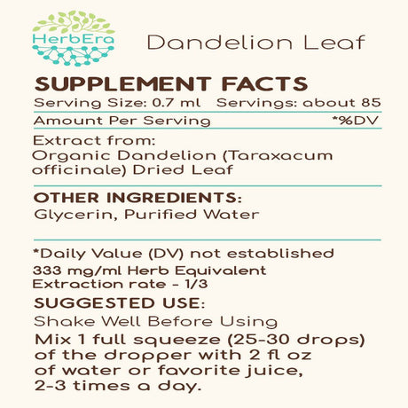 Dandelion Leaf 60 Capsules, 500 Mg, Organic Dandelion (Taraxacum Officinale) Dried Leaf