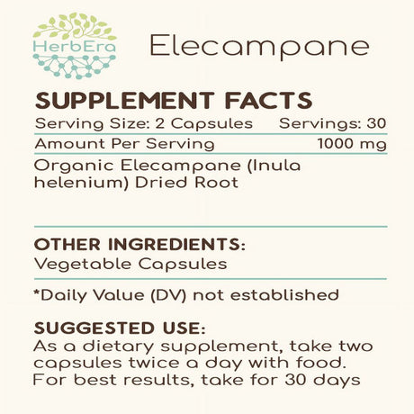 Elecampane 60 Capsules, 500 Mg, Organic Elecampane (Inula Helenium) Dried Root