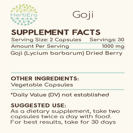 Goji 120 Capsules, 500 Mg, Organic Goji (Lucii, Lycium Barbarum) Dried Berry