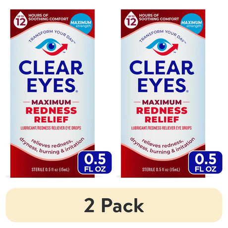 (2 Pack) Clear Eyes Maximum Redness Eye Relief Lubricant Eye Drops, 0.5 Fl Oz
