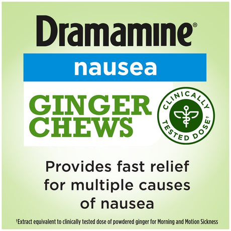 Dramamine Ginger Chews, Nausea Relief Soft Chews Lemon-Honey-Ginger, 20 Count