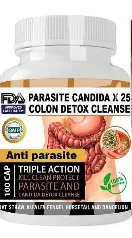 Parasite Detox Clean COLON Flush & Cleanse Parasite Cleanse Candida Support - 100 Capsules