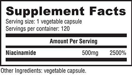 Nutrabio Kosher Niacinamide 500 Mg - 120 Vegetable Capsules