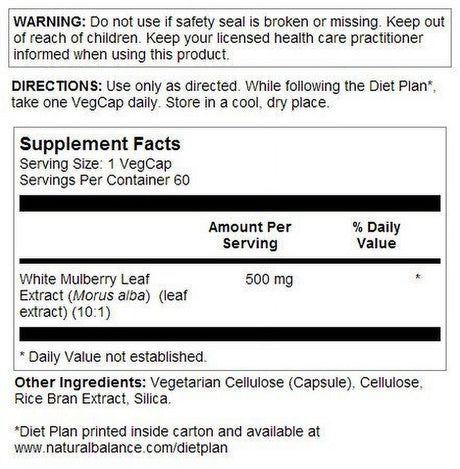 Natural Balance White Mulberry Leaf Extract 60 Vegcap