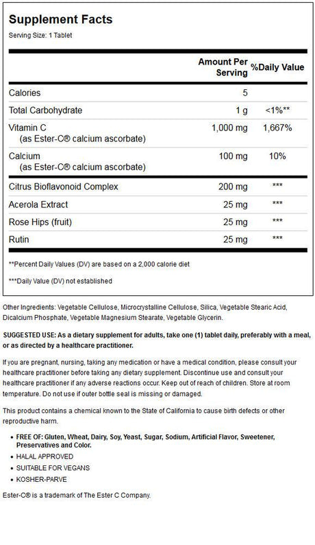 Solgar Ester-C® plus 500 Mg Vitamin C Vegetable Capsules (Ester-C® Ascorbate Complex) - 250 Ct