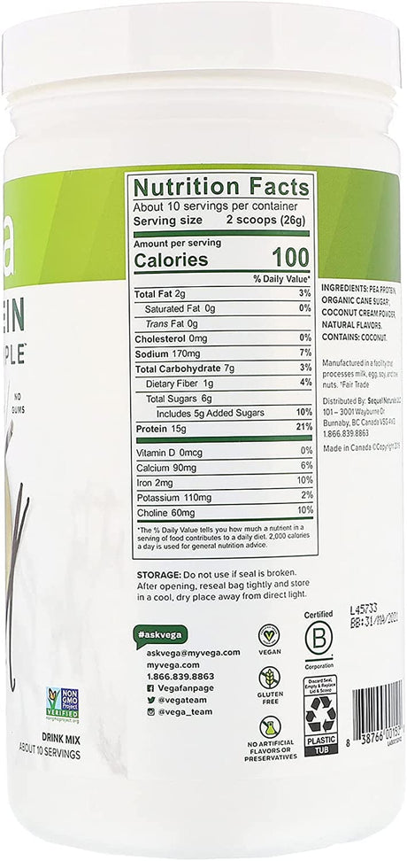 Vega Protein & Greens, Vanilla, 18 Servings, 20G Protein, Plant Based Vegan Protein Powder
