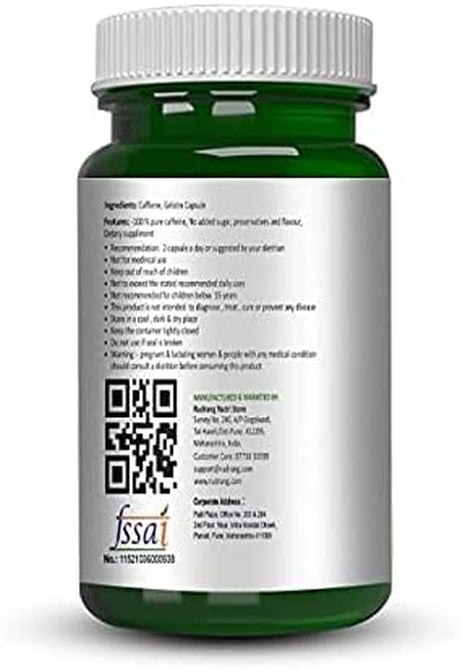 Rudrang Nutri Store Caffeine 200Mg Capsules | Supports Focus, Energy, Endurance – 60 Veg Capsules