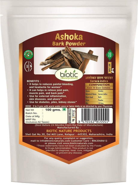 Astha Biotic Ashoka Bark Powder (Saraca Indica) Ashoka Chaal Powder - 100G