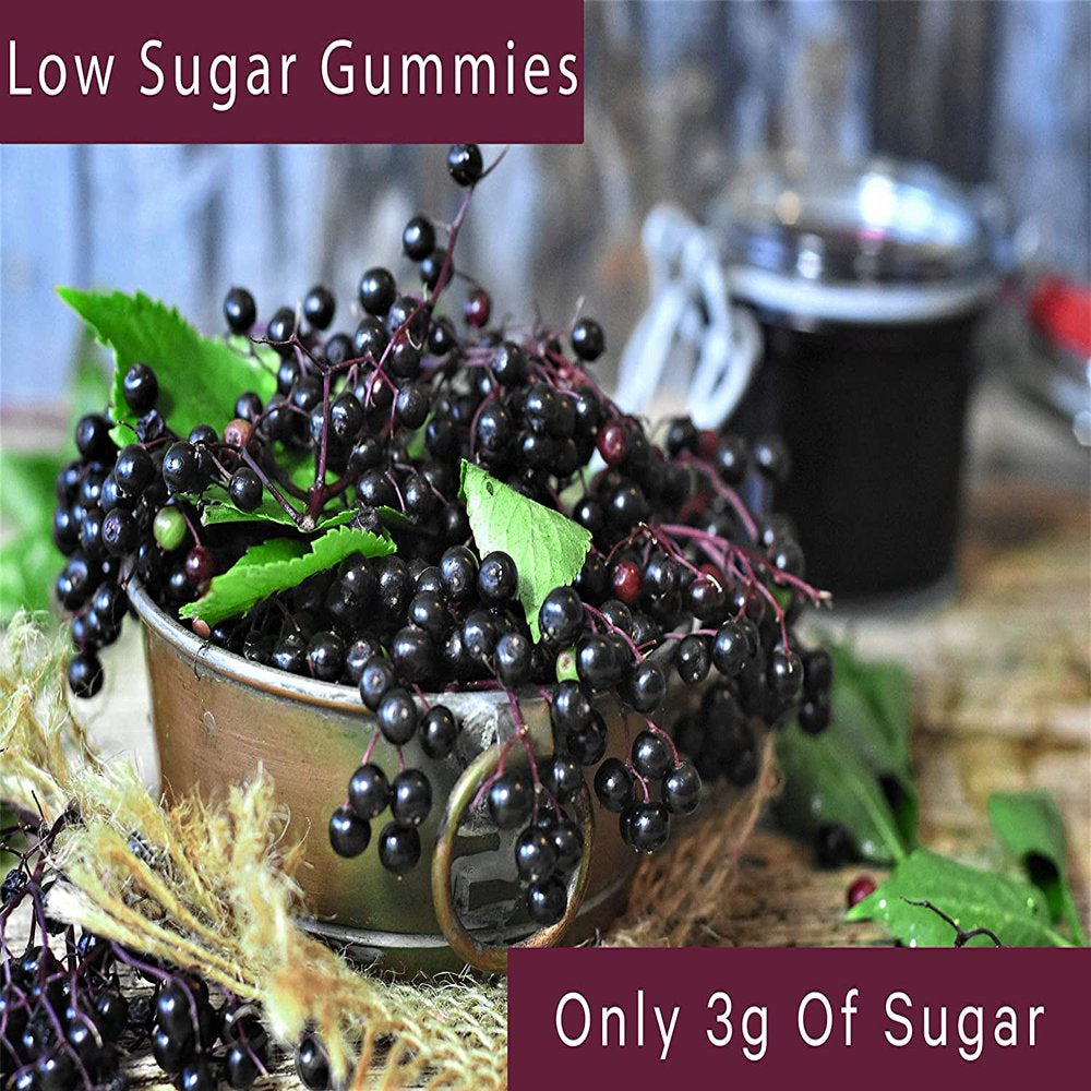 100% Natural Elderberry Gummies with Vitamin C and Zinc , Low Sugar, Vegan, Gluten Free , 60 Count Gummies , 100 Mg Elderberry 90Mg Vitamin C 7.5 Mg Zinc , Supports Immune System Health