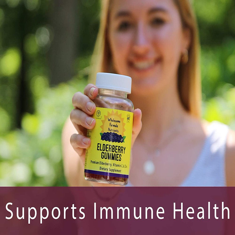 - π PREMIUM IMMUNE SUPPORT - Wholesome Formula ELDERBERRY GUMMIES are a great tasting way to include the amazing Elderberry fruit with immune-supportive nutrients Zinc and Vitamin C.*