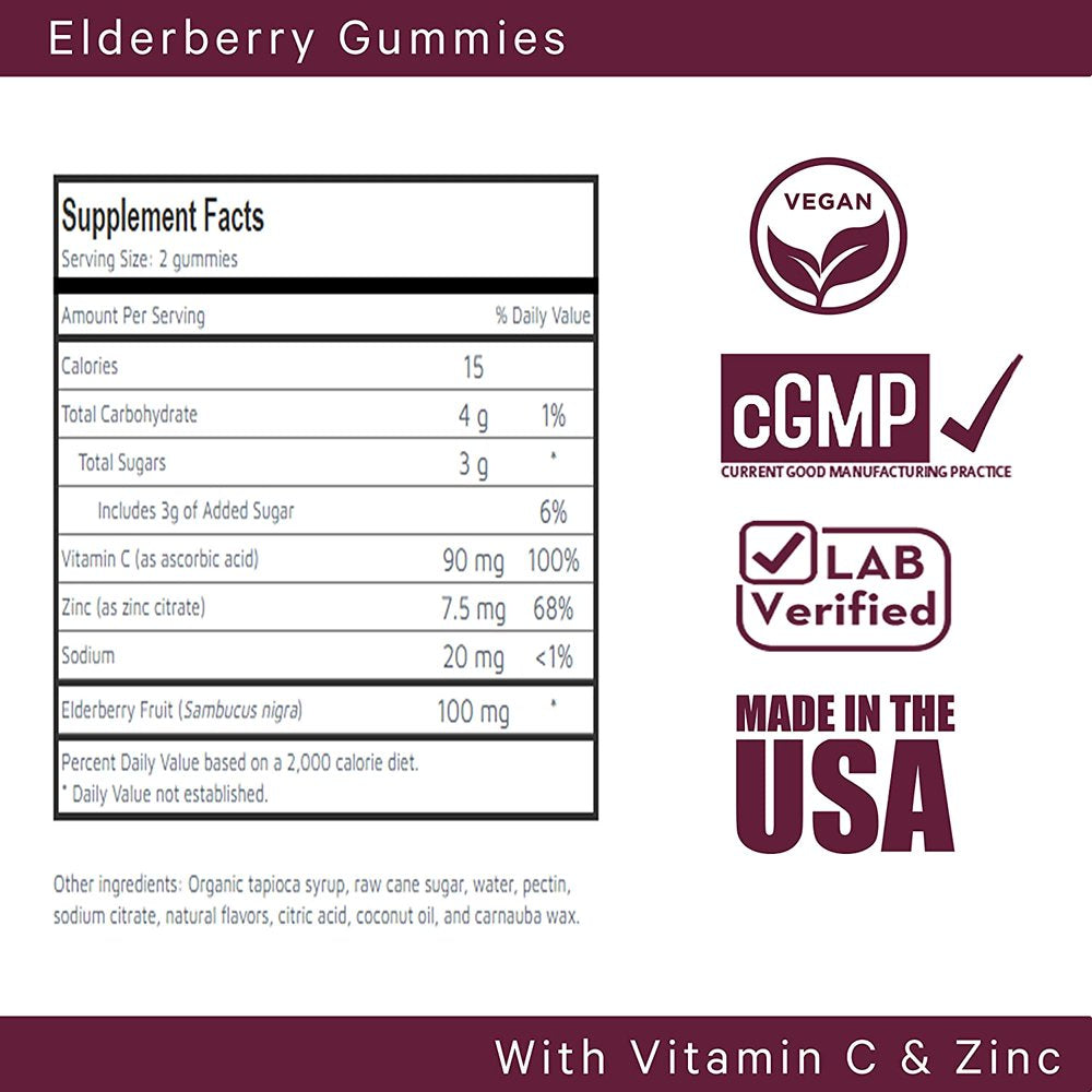 - π IMMUNE SUPPORT FOR THE FAMILY. Our powerful combination of elderberry, vitamin c, and zinc are formulated to keep your family healthy and provide maximum immune support as an immunity booster. Less sick days means you spend more time active and doing what you enjoy! Enjoy the benefit of a zinc supplement, elderberry supplement, and vitamin c gummy all in one yummy immune system booster.*