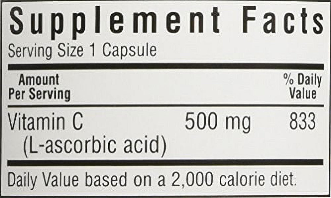 Bluebonnet Nutrition Vitamin C Pure L-Ascorbic Acid 500 mg. Vcaps Bluebonnet’s Vitamin C 500 mg Vcaps provide vitamin C from pure L-ascorbic acid in easy-to-swallow vegetable capsules for maximum assimilation and absorption. VitaminsVitamins differ from macronutrients like carbohydrates, proteins and fats by virtue of the amount required. Typically, minuscule amounts are needed in comparison. Plus, vitamins are not used as an energy source. Instead, they are critical for the normal