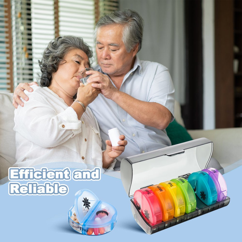 Say goodbye to the daily dosing routine, with our pill organizer 2 times a day, you can sort all the pills you need for a week at once. This vitamin container is colored with rainbow which could be used as your visual aid, you can find the colorful pill organizer easily when you need it and it can also worked as a reminder, once you're attracted to this eye catching pill dispenser, you will consider if you've taken your pills.