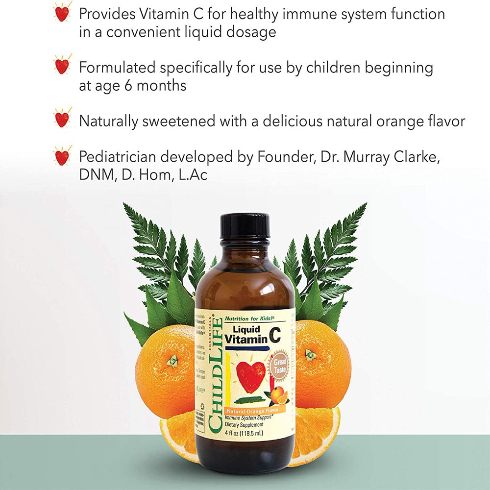 • ChildLife vitamin C is a pleasant-tasting liquid with natural orange flavor to help ensure ease of use for children of all ages