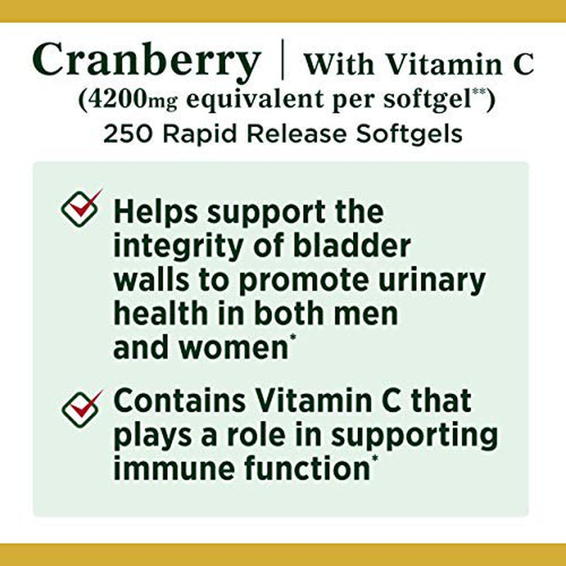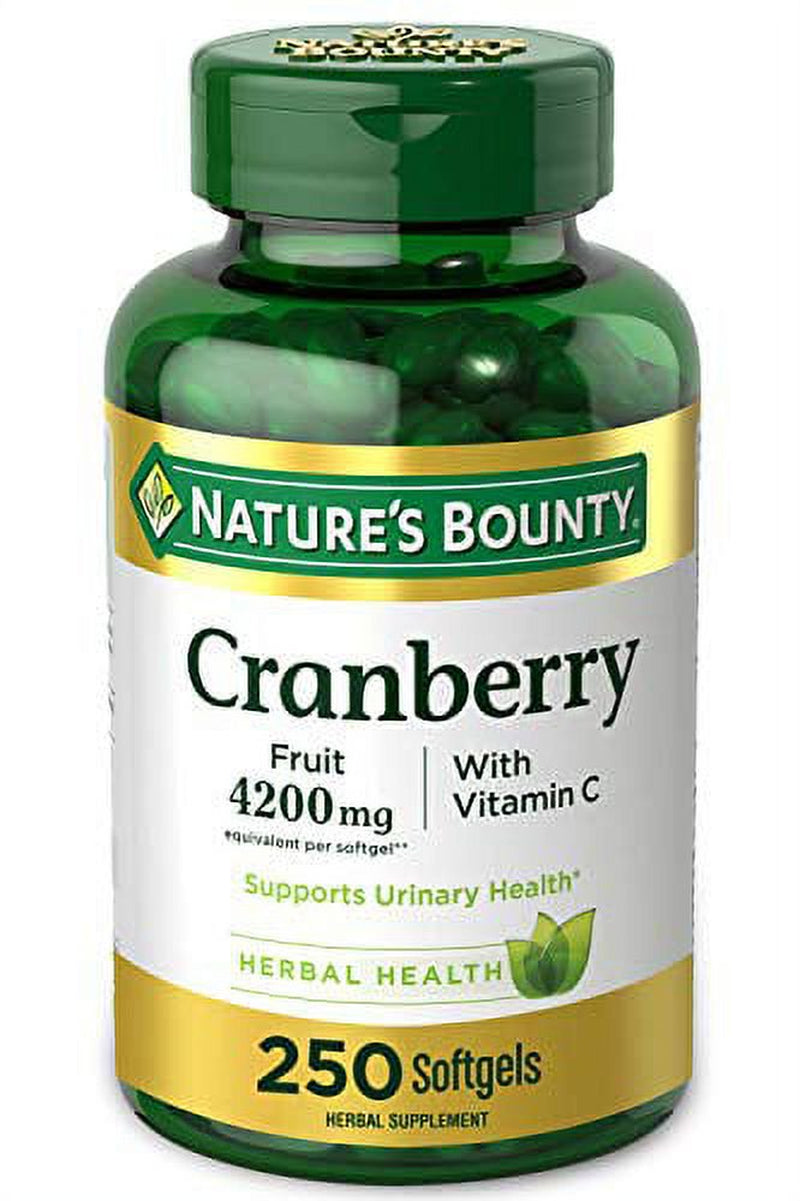 | Product Name | Cranberry Pills w/ Vitamin C by Nature's Bounty, Supports Urinary & Immune Health, 4200mg Cranberry Supplement, 250 Softgels |
