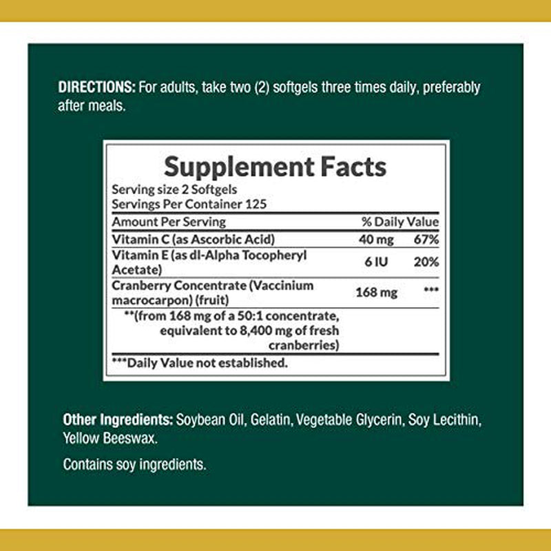 Cranberry Pills W/ Vitamin C by Nature'S Bounty, Supports Urinary & Immune Health, 4200Mg Cranberry Supplement, 250 Softgels