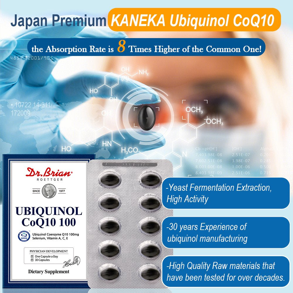 - KANEKA UBIQUINOL CO Q10: Dr. Brian coq10 100mg softgel uses premium patent KENEKA ubiquinol coq10 from Japan, which extracted by natural yeast fermentation with high activity.