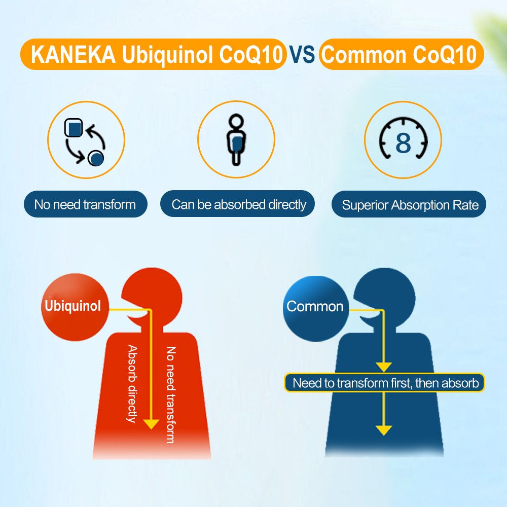 - SUPERIOR ABSORPTION: Compared with traditional co q10, Dr. brain Keneka ubiquinol q10 has a higher absorption(the absorption rate is 8 times than traditional one) and can be absorbed by human body easily without any conversion process.