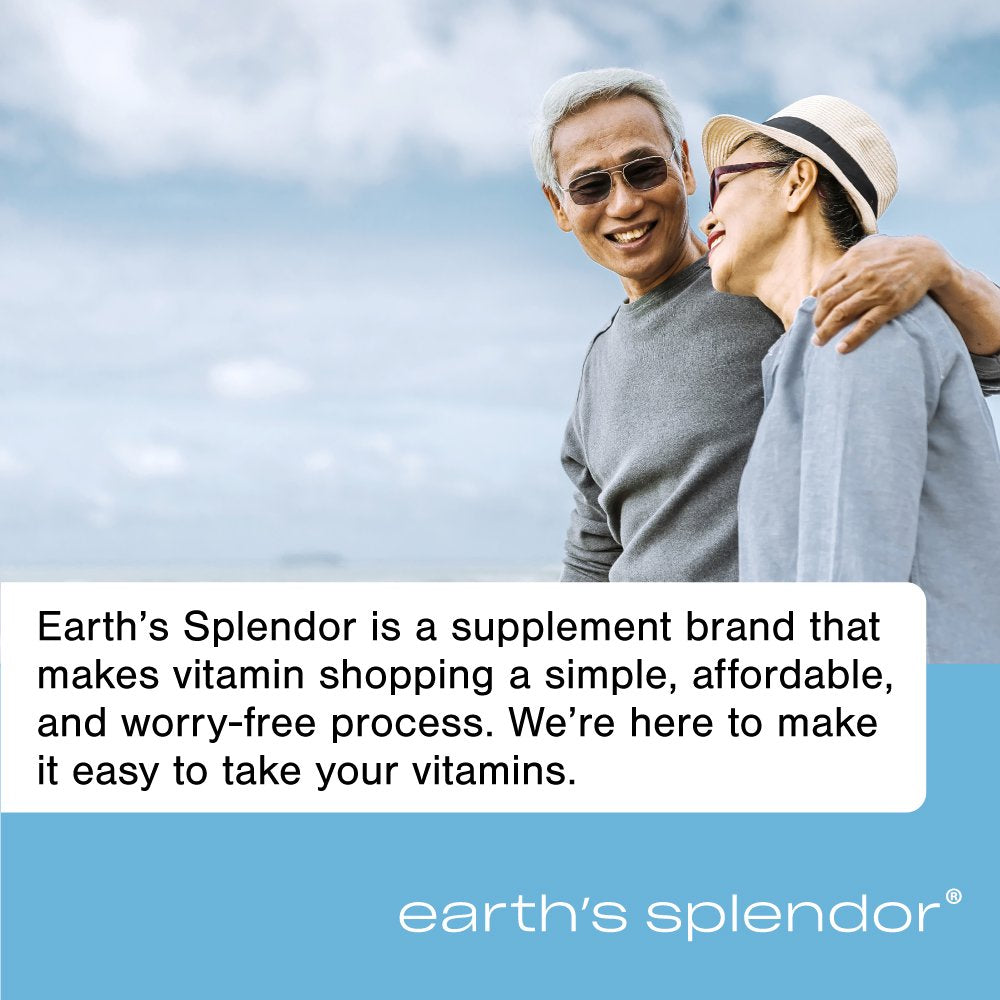 At Earth’s Splendor, we have learned a thing or two from half a century in the supplements business, and we are passionate about applying that to everything we do. We believe buying vitamins should be simple, affordable, and worry-free, so we made it that way. We make high quality vitamins and supplements that enhance your personal health journey for a fair, reasonable price. With us, what you see is what you get. From the explanation of benefits to the ingredients list, expect honesty and clarity. Earth's Splendor Vitamin C contains 500 mg of Vitamin C plus Rose Hips to help support immune health and provide antioxidant support. Vitamin C also supports healthy skin by promoting collagen formation. The Earth’s Splendor Vitamin C formula is vegetarian-friendly, free from artificial color or flavor and contains no yeast, wheat, gluten, milk or milk derivatives, lactose, sugar, salt, or soy. Simply take one of these vitamin supplements daily to provide your body with essential vitamins and minerals. Help support immune system health with Earth’s Splendor Vitamin C.