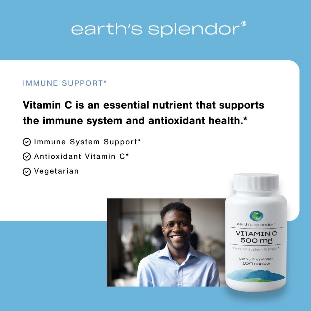 Earth's Splendor Vitamin C, Dietary Supplement, 500mg IU Tablets, 100 Count