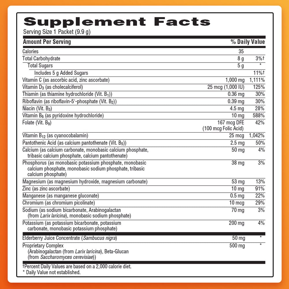 - Includes 18 single-serving packets (0.29 oz. each) of Emergen-C Original Formula in Super Orange flavor
