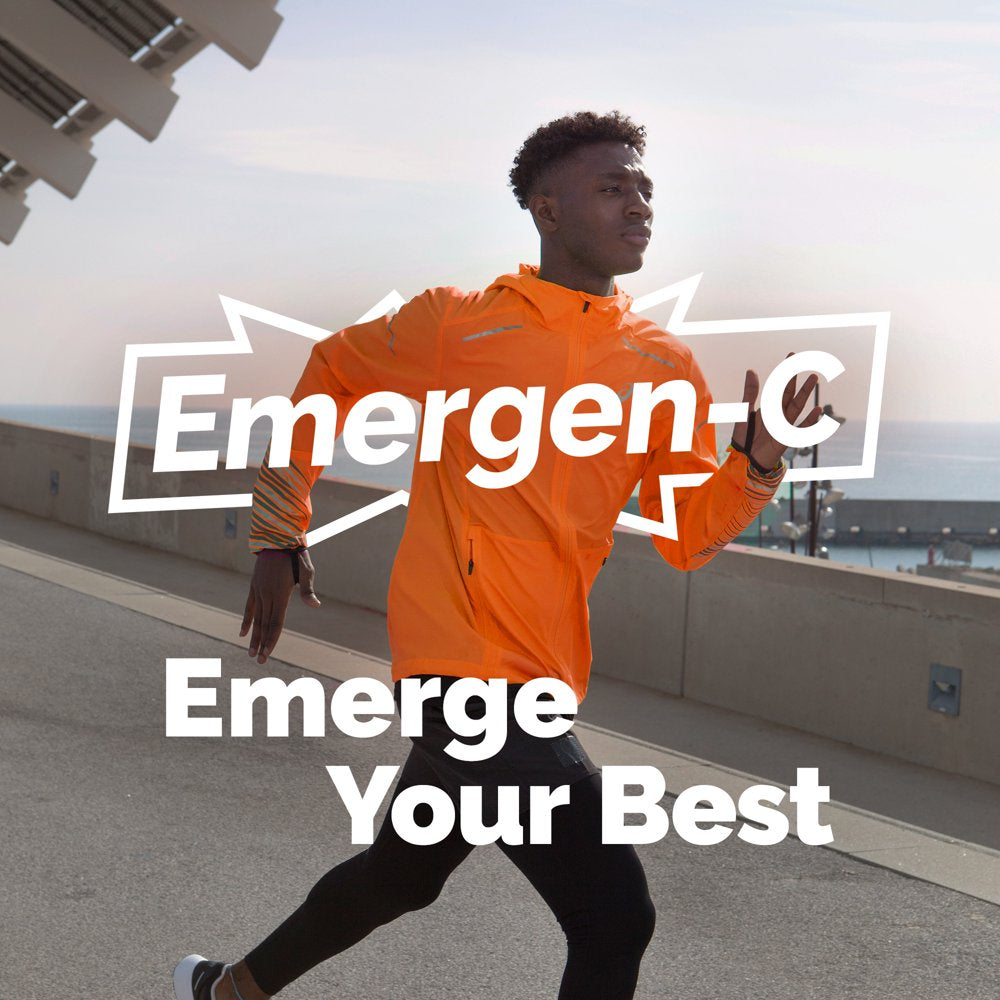 Emergen-C vitamin C drink mix is a great way to support your daily wellness routine. Emergen-C provides Daily Immune Support* with more Vitamin C than 10 oranges (1) – and is packed with B Vitamins to enhance energy* naturally, Electrolytes and Antioxidants (2). Emergen-C Vitamin C drink mixes are made with natural, real fruit flavors, plus they have no artificial sweeteners and are caffeine-free. Mix with 4 to 6 ounces of water for a fizzy, fruity boost of goodness. With dozens of tasty flavors and a variety of special formulas, Emergen-C Original Formula vitamin mix makes it deliciously easy to support ongoing wellness goals. Transform every day with immune-supporting Vitamin C from Emergen-C. (1) Based on using the USDA.gov nutrient database value for a large, raw orange (2) Antioxidants include Vitamin C, Zinc and Manganese *These statements have not been evaluated by the Food and Drug Administration. This product is not intended to diagnose, treat, cure, or prevent any disease.