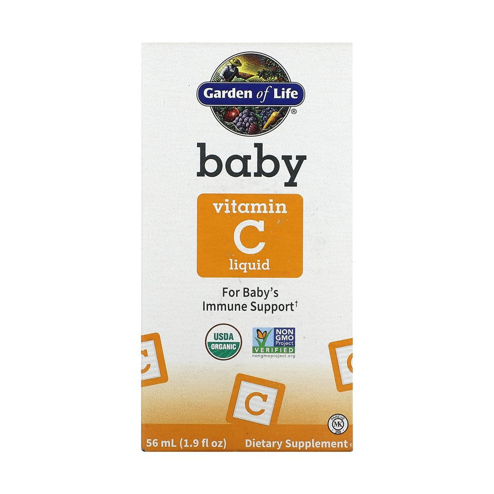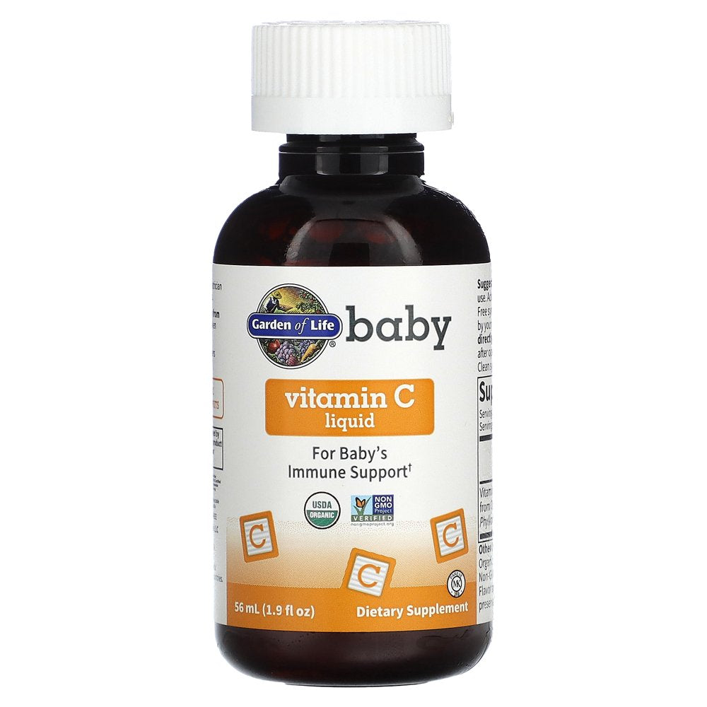 Garden of Life - Baby Vitamin C Liquid - 1.9 fl. oz. (56 mL) Vitamin C is essential for your baby. Garden of Life's baby vitamin C liquid supports immune health, iron absorption, production of connective tissue and so much more. Baby Vitamin C Liquid Benefits For Baby's Immune Support From Certified Organic Real Food Pleasant taste Free from Artificial Flavors, Sweeteners, Dyes and Chemicals Certified USDA Organic Non-GMO Project Verified Certified Gluten Free Certified Vegan.