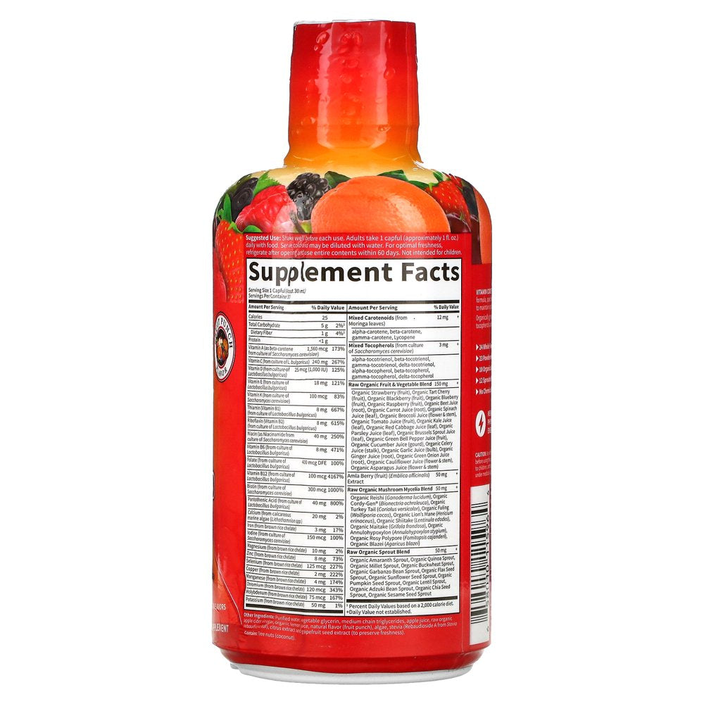 It's delicious to take your vitamins every day with Vitamin Code Liquid Multivitamin Formula - Fruit Punch. This comprehensive formula is made with RAW whole food vitamins and minerals, which features essential vitamins and minerals for extraordinary health and vitality. It is made from 46 superfoods, including 34 RAW organic fruits, vegetables and sprouts. Vitamin Code Multivitamin Formula delivers vitamins A, C, D, E and the B-complex along with chromium, iron, selenium, zinc, chromium, calcium, magnesium and zinc. It promotes mental and physical energy along with heart, immune, joint and bone health. It also supports metabolism and delivers antioxidants. Your body is designed to recognize and utilize nutrients best when they come from food. Each individual nutrient delivered to your body from food comes intact with its own specific and unique cofactors that tell your body where and how to utilize that nutrient. When vitamins or minerals are isolated from food or synthesized in a