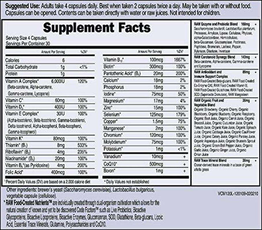Made with individually ?grown? nutrients utilizing probiotic cultivation to produce RAW Food-Created Nutrients?, Vitamin Code supplements are delivered in a whole food base of fruits and vegetables. Vitamin Code supplements are RAW, which not only means that they are produced below 115º F, but also means that these nutrients come with their natural cofactors, along with live probiotics and enzymes, just like raw foods! Vitamin Code raw powders are delivered in capsules without any binders or fillers?everything you want and nothing you don?t want. Vitamin Code Men is a comprehensive whole food multi-nutrient formula, specifically formulated to meet the unique needs of active men, providing the nourishment the body craves to maintain optimal health and well-being. Twenty-three fruits and vegetables add supporting antioxidants, vitamins and nutrient cofactors. RAW means no high heat, synthetic binders, fillers, artificial flavors, sweeteners, colors or additives commonly used in tablets. Whole food means RAW Food-Created Nutrients are blended in a base of 23 fruits and vegetables together with food cofactors.