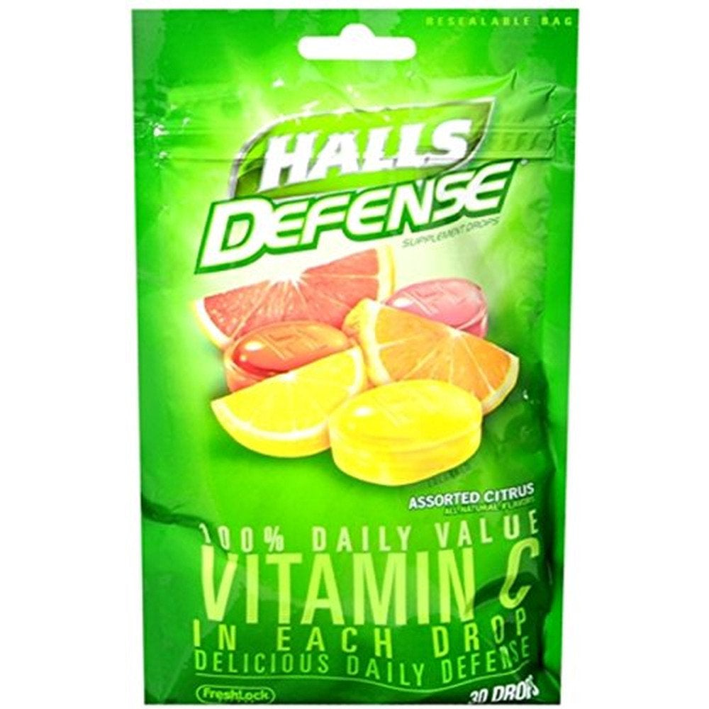 HALLS Defense Vitamin C Supplement Drops help keep you going by helping to support your immune system. Every delicious, fruit-flavored drop delivers 100% of the Daily Value of Vitamin C. Assorted Citrus HALLS Defense Vitamin C Supplement Drops are available in the following natural flavors: Lemon, Sweet Grapefruit and Orange.