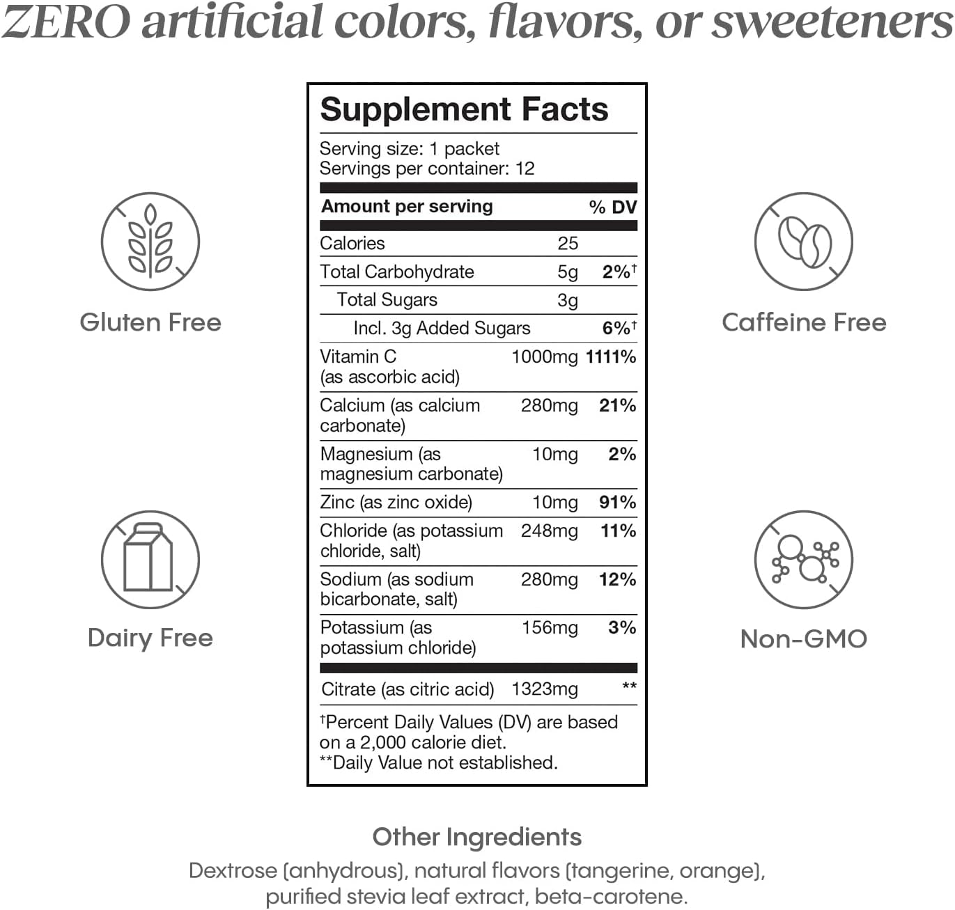 Hydralyte Electrolytes plus Immunity, Citrus Low Sugar Rapid Rehydration Powder - Lightly Sparkling Electrolyte Powder Packets with 1,000Mg Vitamin C and Zinc for an Immune Boost (8Oz Serve, 12 Count)