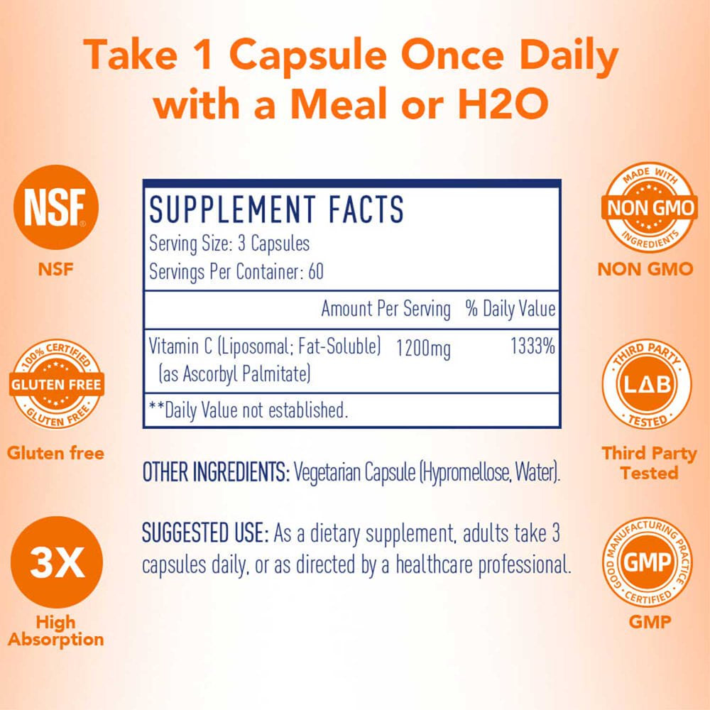 - 1200mg of liposomal vitamin C per serving can help boost your immune system and overall health