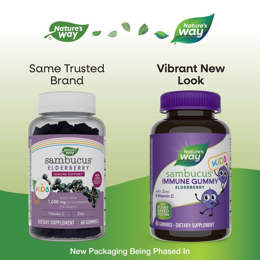 Nature’S Way Sambucus Immune Gummies for Kids, with Elderberry, Vitamin C and Zinc, Unisex, 60 Ct