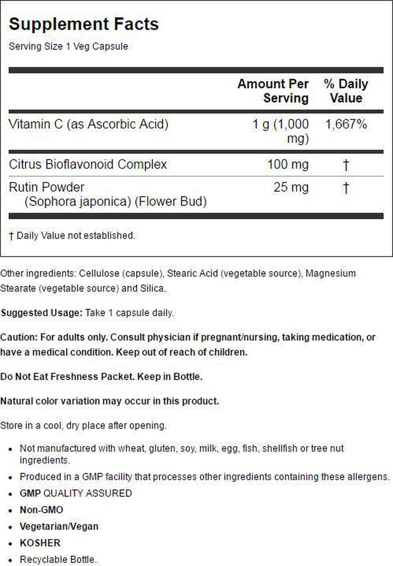 Vitamin C is an essential nutrient well known for its vital role in the immune system.* It is a highly effective antioxidant that can protect the body's structures from oxidative damage generated during normal metabolism.* Vitamin C is also necessary for the production of collagen and is therefore important for skin, bone, and joint health.* This product includes Bioflavonoids, which work synergistically to support Vitamin C utilization