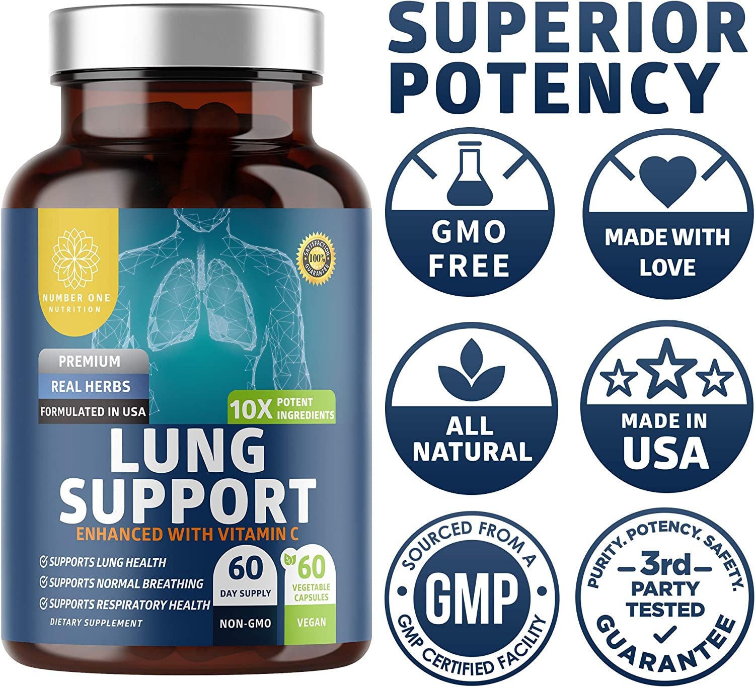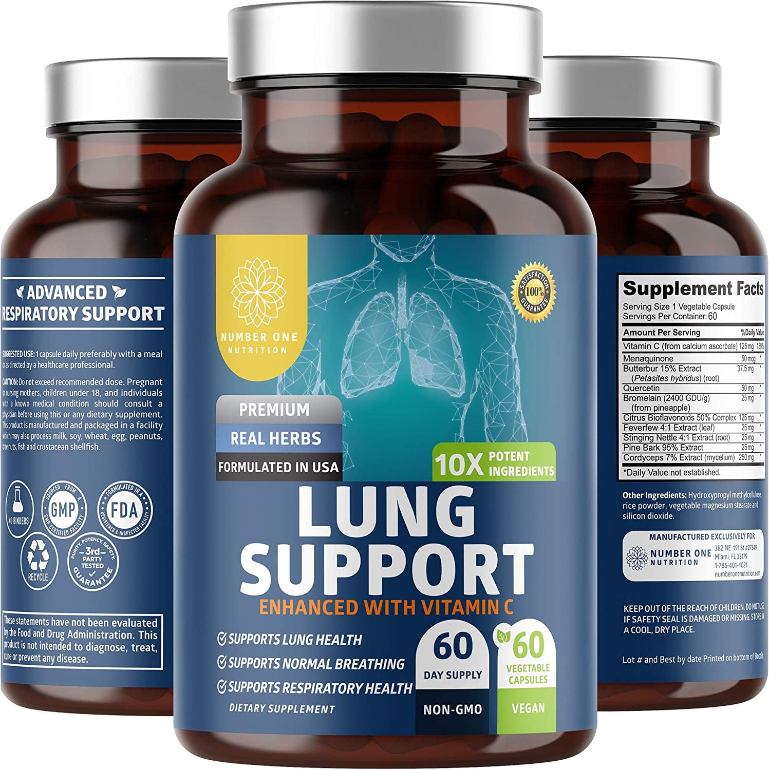 Number One Nutrition N1N Premium Lung Support Supplement [10 Potent Ingredients] Natural Lung Cleanse & Detox with Quercetin, Bromelain and Vitamin C to Help Support Respiratory Health, 60 Veg Caps