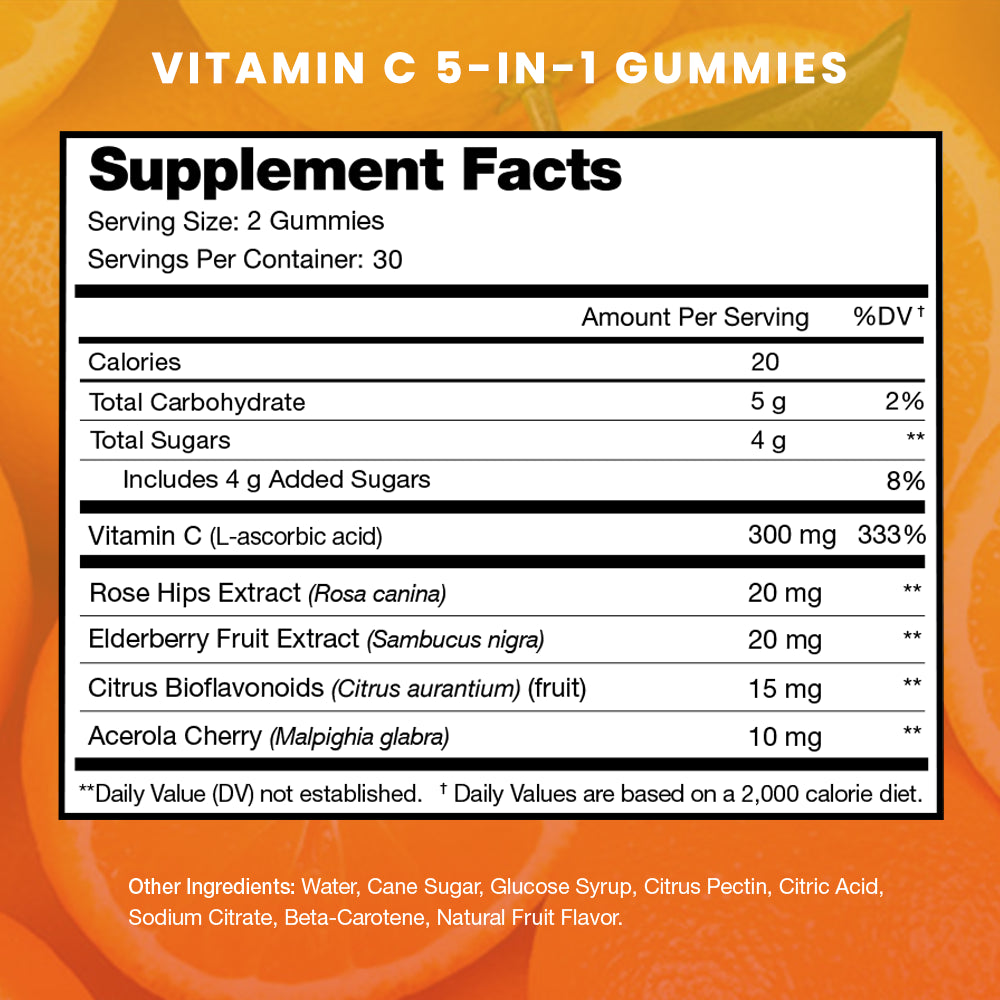 - A Convenient Alternative / More C Than 4 Oranges - Here’s a fact: NutraChamps Vitamin C Gummies are easy and convenient to take. In the time it takes to peel 4 oranges, you could’ve already gotten even more vitamin C and other great nutrients. It’s the quickest way to boost immune system health on-the-go. Take it with or without food.