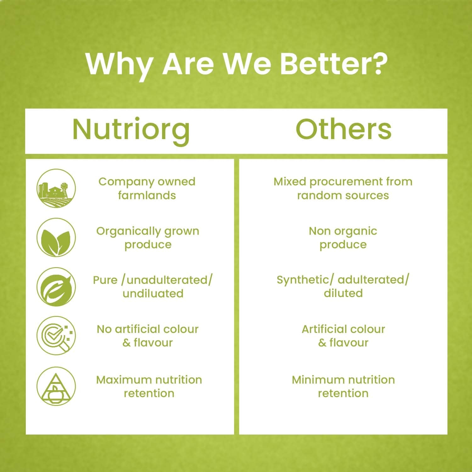 Nutriorg Amla Juice is made from Organic amla which is grown in the company's own Certified Organic Farms Located in Rajasthan. Nutriorg Amla juice is 100% pure and unadulterated Juice. Nutriorg Amla Juice is the richest source of vitamin C. Amla is considered the most powerful herb to manage overall health and well-being. Amla is a rich source of Vitamin C, it is considered to contain 20 times more vitamin C than oranges. Nutriorg Amla Juice is also rich in proteins and fibers. It contains minerals such as iron, calcium, and phosphorous besides Vitamin A and C. It is also one of the strongest immune boosters for mankind which means that regular intake of amla will help build immunity.